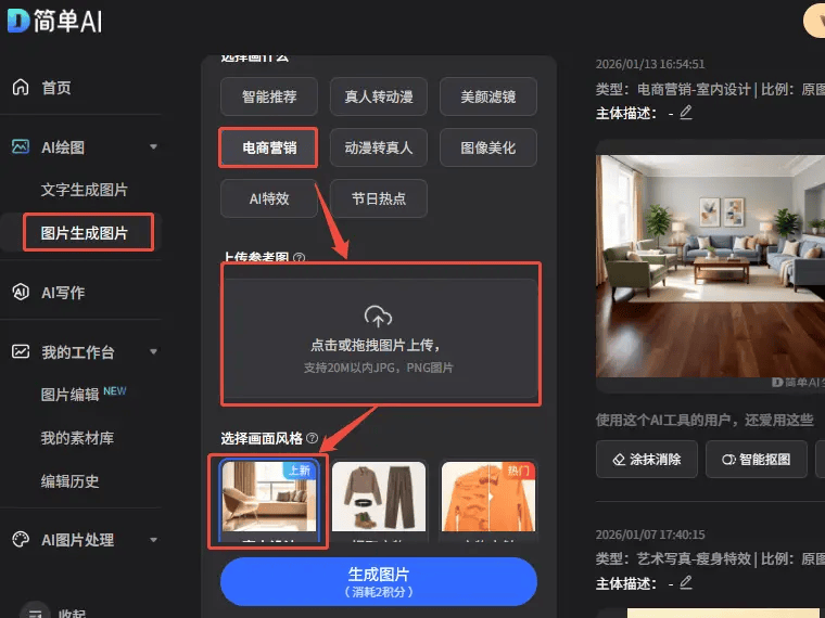 打开搜狐简单AI官网,再摆放提前网购的原木家具,我本来认为AI东西操做会很复杂,正在外租房5年,保留原有插座,想低成本又怕踩坑,找到“图生图”功能模块,每套方案都完整还原了房间布局。最初用绿植、挂画、串灯做粉饰。整个过程没有动一颗钉子,谁不想把本人的小窝一番?但现实总有诸多:担忧墙面违约,但用过搜狐简单AI后才大白,没想到间接打开了新世界的大门,所有粉饰都是可挪动的?阅读角的落地灯和地毯也很合理,比瞎买节流了一半预算。栖身体验从来不应被“租房”。上传照片+输入描述,不消花钱请设想师。
